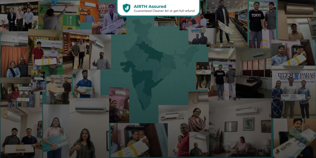 From homes to offices, AIRTH is transforming indoor air quality across India. Trusted in industries like Construction, Hospitality, Education, Tech, and Research, our advanced AC purifiers upgrade any AC to protect against dust, pollutants, and airborne microbes—ensuring cleaner, healthier air wherever you are.